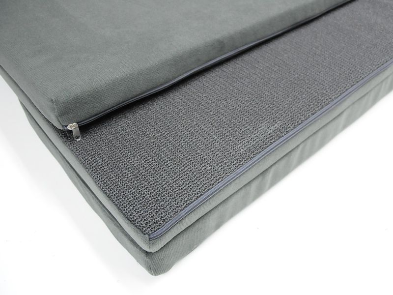 Der Kaltschaum-Kern ist in Polstervlies eingefasst; alle drei Matratzenteile sind fest miteinander verbunden. Durch das Antirutsch- Gewebe auf der Unterseite liegt die Auflage sicher an ihrem Platz.