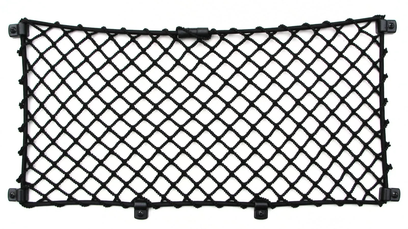 Elastisches Netz, mit Rahmen aus Gummiseil, oben offen. Rautenweite des Netzes ca. 20 x 20 mm.
